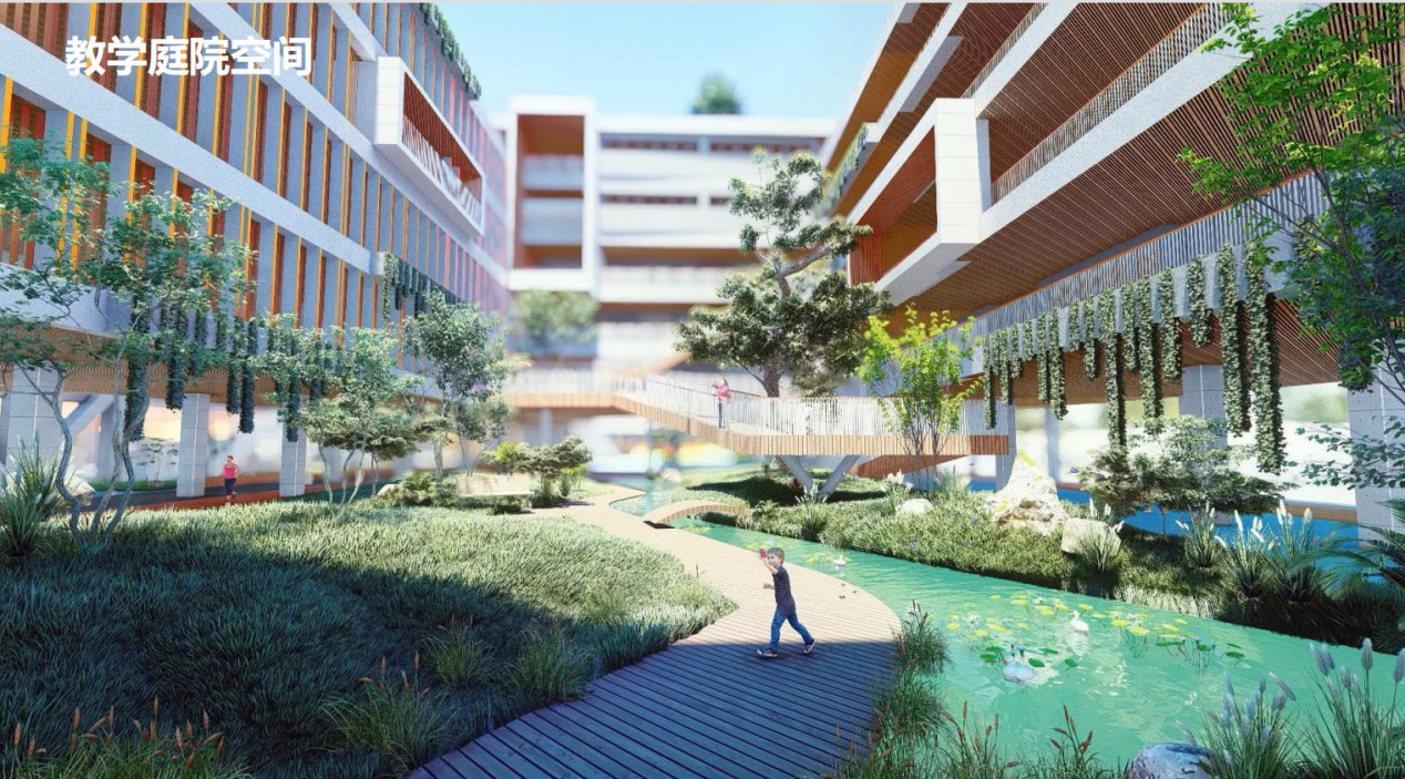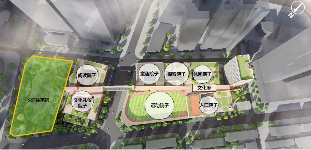 設(shè)計秉承 “讓每一個學(xué)生成為學(xué)習(xí)的主體”的理念,用一條“文化廊”串聯(lián)“七個教育院子”, 并與宗祠、公園相連,與周邊環(huán)境積極互動。在多個設(shè)計維度適應(yīng)未來教育的“校園模式”“社群概念”“成長空間”“復(fù)合共享”“綠色生態(tài)”“自然藝術(shù)”“文體健康”“鏈接社區(qū)”“快速建造”“成本控制”“持續(xù)運營”。