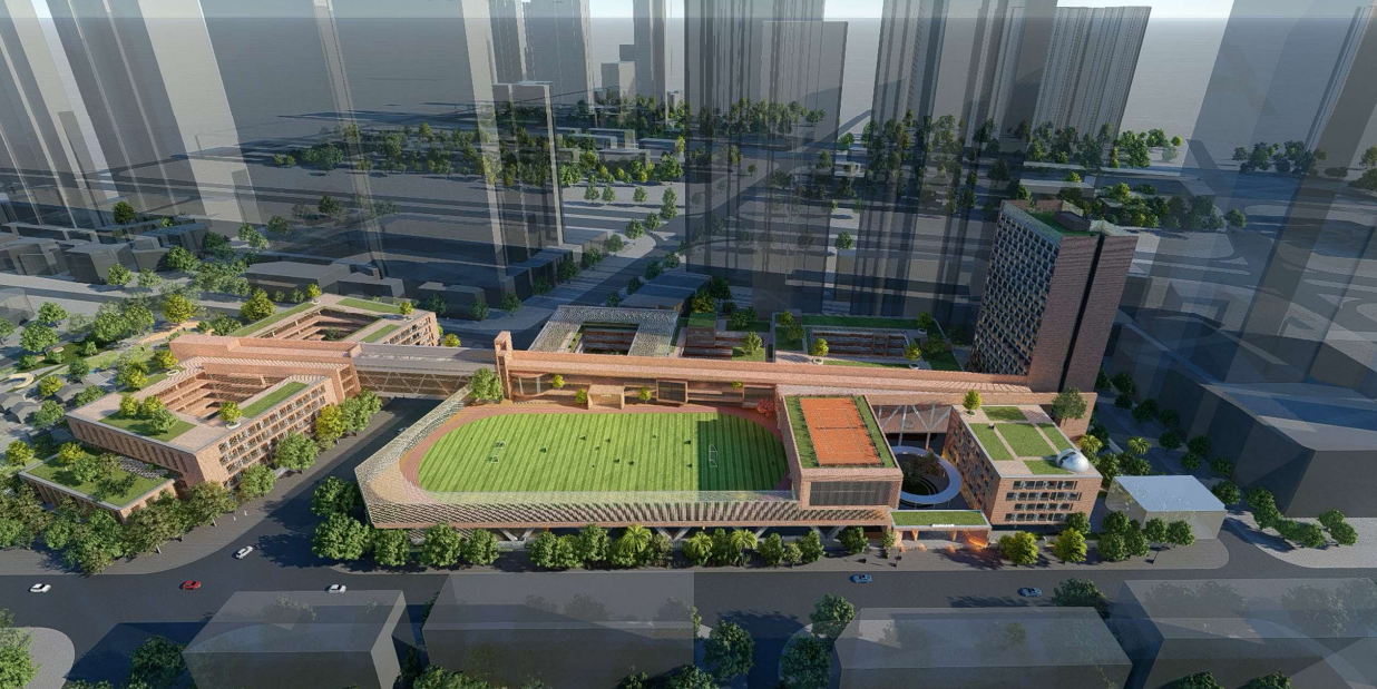 項目位于廣東省深圳市龍崗區(qū)龍崗大道以北,龍城廣場地鐵站東北側(cè)約400米,屬于龍崗街道的教育配套設(shè)施,將建成為九年一貫制72班學(xué)校。總用地面積31160.5平方米,總建筑面積86550.56平方米,其中教學(xué)及輔助用房36536平方米,辦公用房1306平方米,生活服務(wù)用房8092平方米,選配校舍40616.56平方米。建設(shè)內(nèi)容包括小學(xué)及初中教學(xué)樓、未來教育中心、藝術(shù)樓、操場架空+食堂、教工宿舍樓、地下車庫等建筑物及室外運動場、道路廣場、綠化等室外設(shè)施。