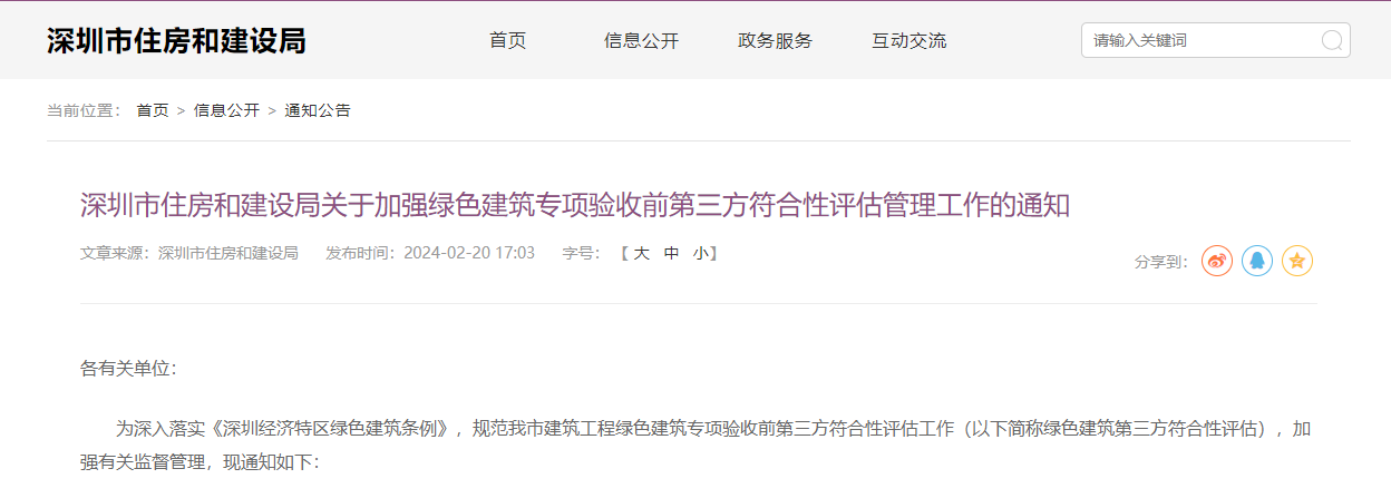 深圳市住房和建設局關于加強綠色建筑專項驗收前第三方符合性評估管理工作的通知
